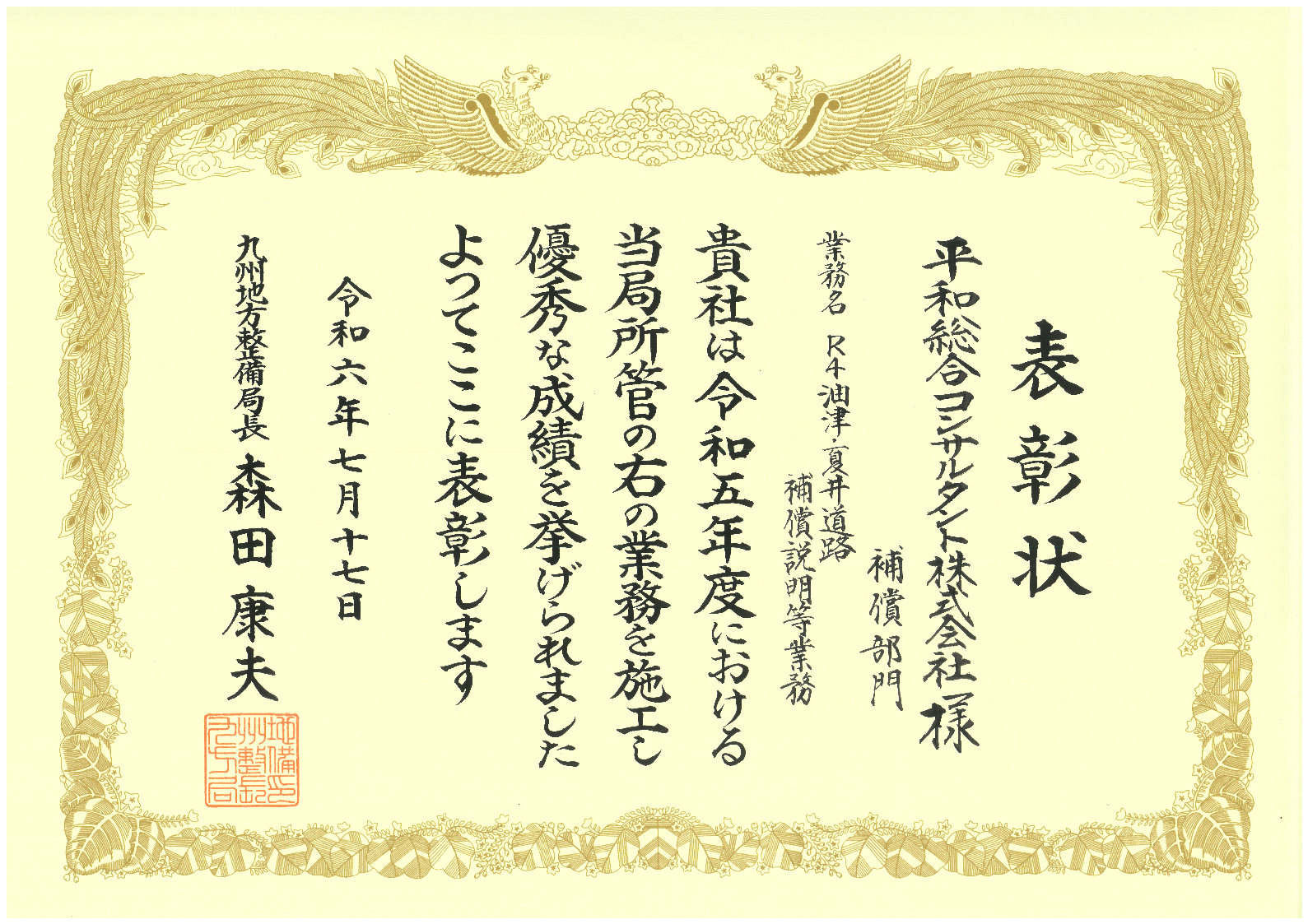 令和6年度にて、弊社で新しく受賞いたしましたことをご報告いたします。 【国土交通省 行政功労表彰 受賞実績】 ・表彰者:九州地方...
